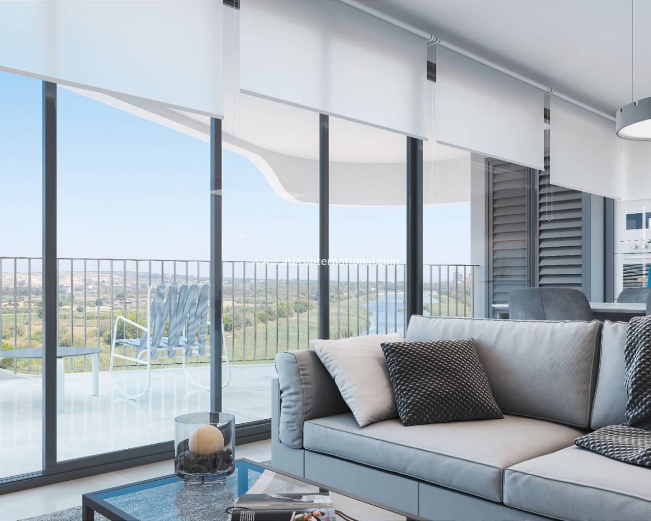 Un bloque único de apartamentos con una vivienda por planta, ubicado junto al río con espectaculares vistas y cerca del centro de Guardamar del Segura. Cuentan con 3 dormitorios y 2 baños, aparcamiento privado y piscina comunitaria. Se puede llegar a la playa caminando a través del pinar y el puerto deportivo está a solo 2 km. Guardamar es una ciudad vibrante con mercados locales, una gran variedad de servicios y una estación de autobuses.