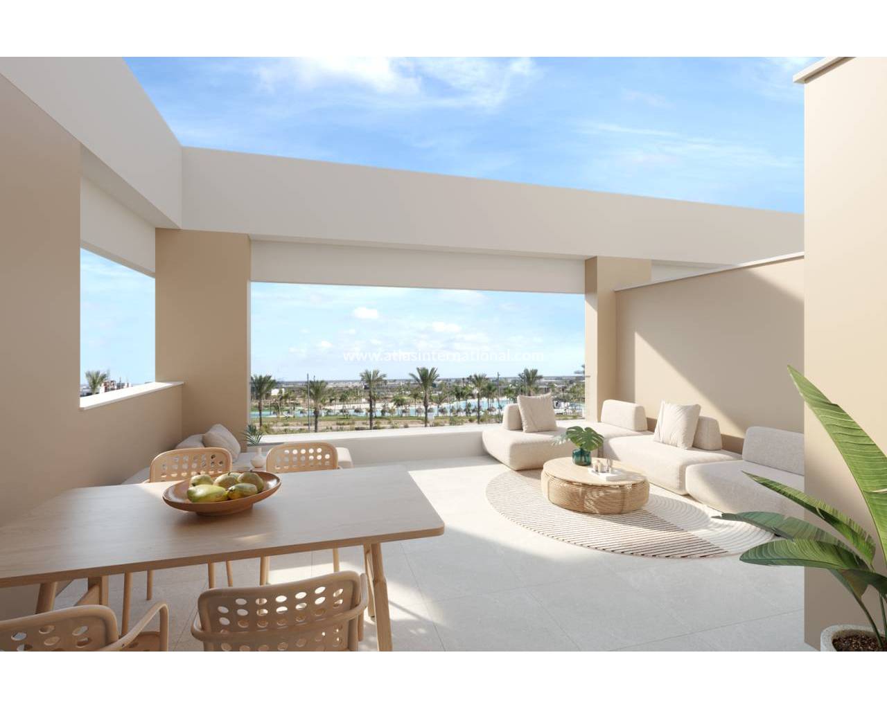 Ces appartements sont disponibles en 2 ou 3 chambres et disposent de 2 places de parking, d'un débarras, d'une piscine commune, d'un court de paddle-tennis et d'une aire de jeux pour enfants. Elles sont construites avec des matériaux de haute qualité et disposent de la climatisation et du chauffage au sol dans les salles de bains. Les propriétés sont situées dans la station balnéaire du lac Santa Rosalía, avec 17 000 m² de plages et d'îles à apprécier.