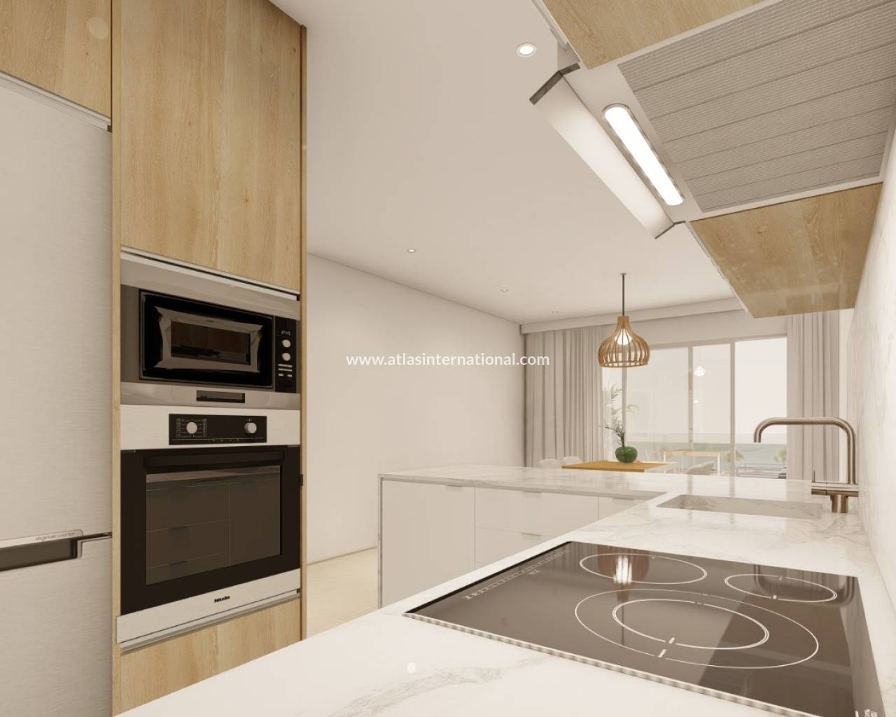 Íbúðirnar á jarðhæð eru með rúmgóðum görðum og útsýni yfir sameiginlegt svæði, íbúðirnar á fyrstu hæð eru með stórum svölum með útsýni yfir sameiginlegt svæði og sjóinn og þakíbúðirnar eru með rúmgóðum svölum og stórri sólarverönd með sér nuddpotti, hönnunarpergólu, gervigrasi, sumareldhúsi og frábæru útsýni yfir sameiginlegt svæði og sjóinn.