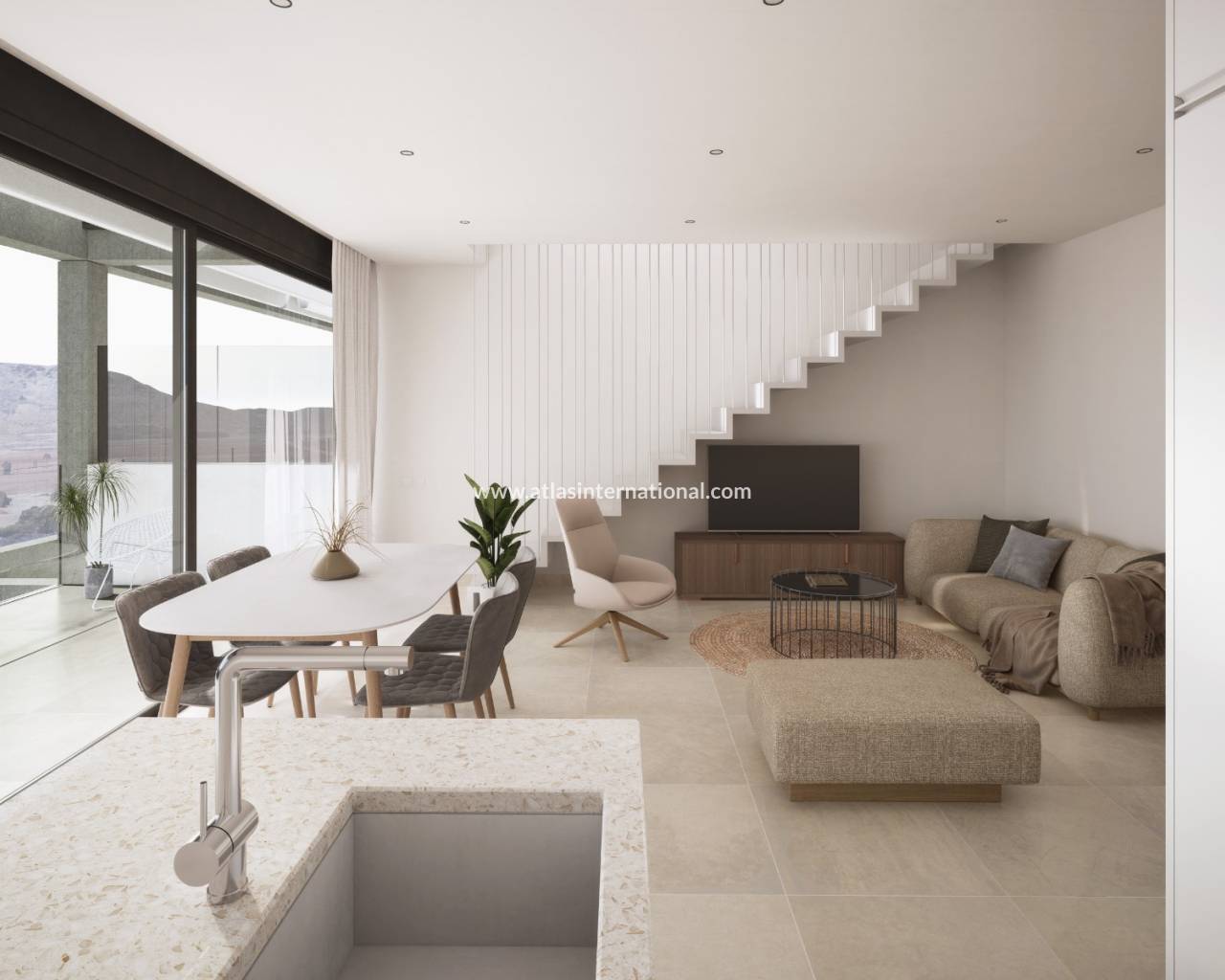 Nútíma íbúðasamstæða við hliðina á ströndinni með tveggja eða þriggja herbergja eignum, eignirnar eru staðsettar mjög nálægt hinum fræga La Manga golfvelli og aðeins 400 metrum frá sjónum. Cartagena borg er í aðeins tuttugu mínútna akstursfjarlægð og við hlið íbúðanna eru tvær smábátahöfnir