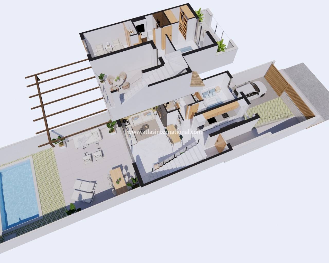 Deze woningen, direct aan de golfbaan gelegen, bieden een adembenemend uitzicht op de Mar Menor. Elke woning beschikt over een privézwembad en een ruime kelder met parkeergelegenheid voor twee auto's. Ze zijn volledig uitgerust (apparatuur en airconditioning) en hebben een buitenkeuken op het terras met een spectaculair uitzicht op de golfbaan en de zee.