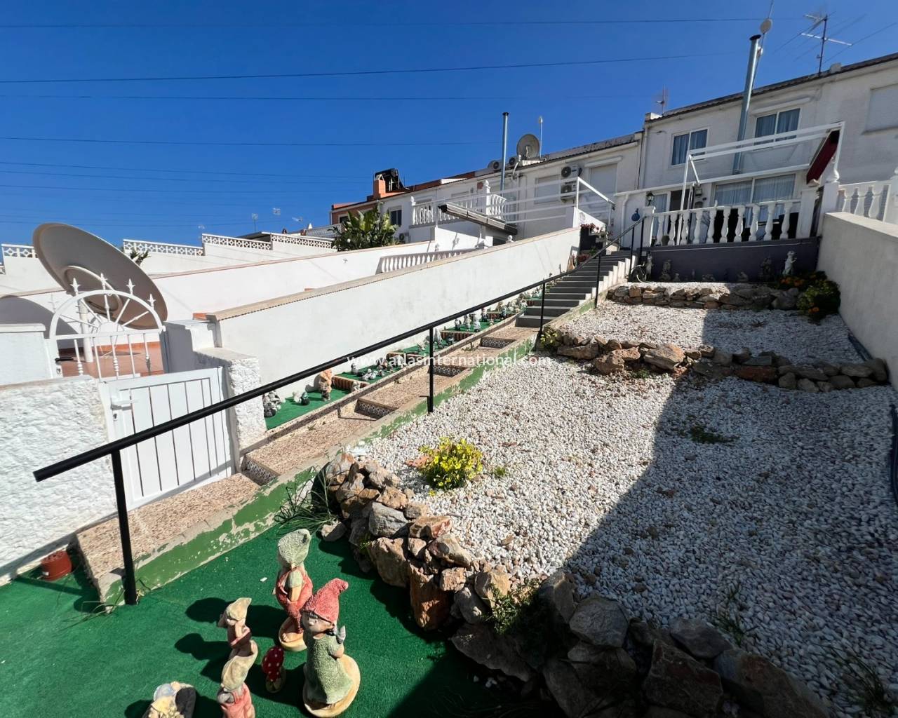 Et tradisjonelt spansk hus beliggende i de vakre omgivelsene til Los Balcones. Eiendommen består av 3 romslige soverom med tilhørende bad og et vaskerom, en stor åpen stue/kjøkkenløsning med utgang til hagen, en lukket uteplass foran og en terrasse med utsikt over saltslettene.
