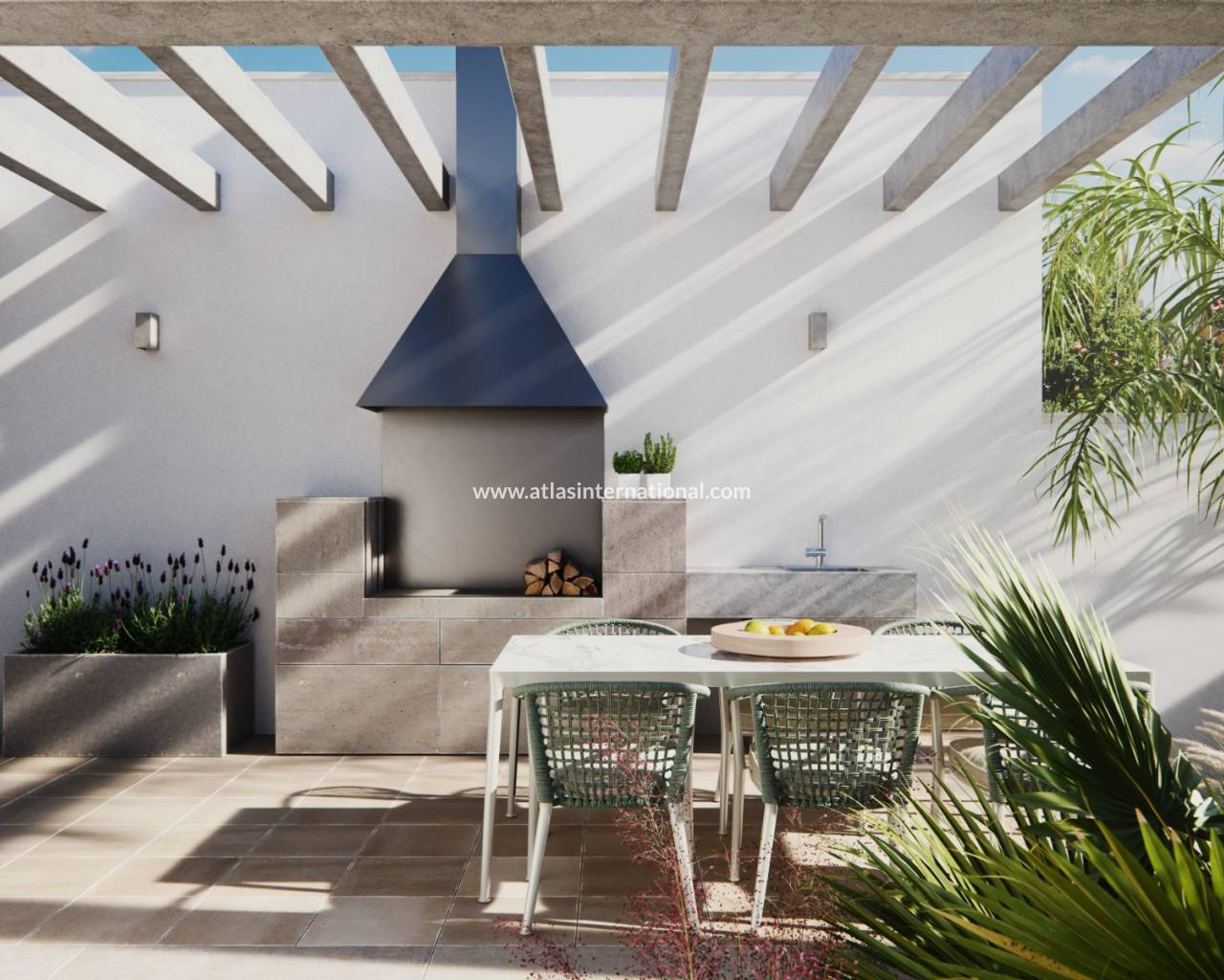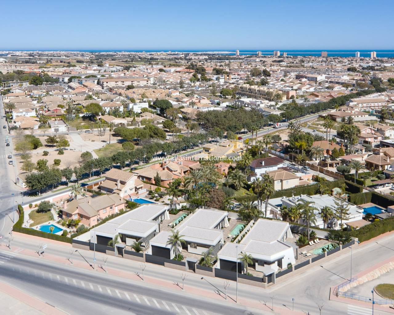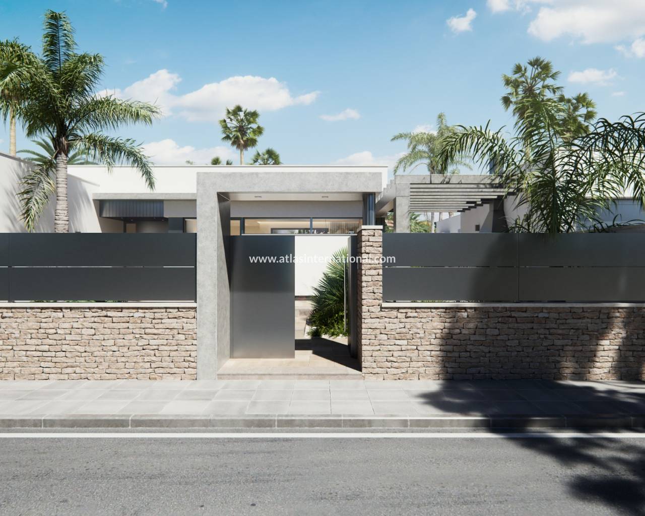 Tre eksklusive villaer i et boligområde i San Javier, med en tomt på 600 m², et bebygd areal på 217,27 m² i én etasje, et privat basseng og store hager.