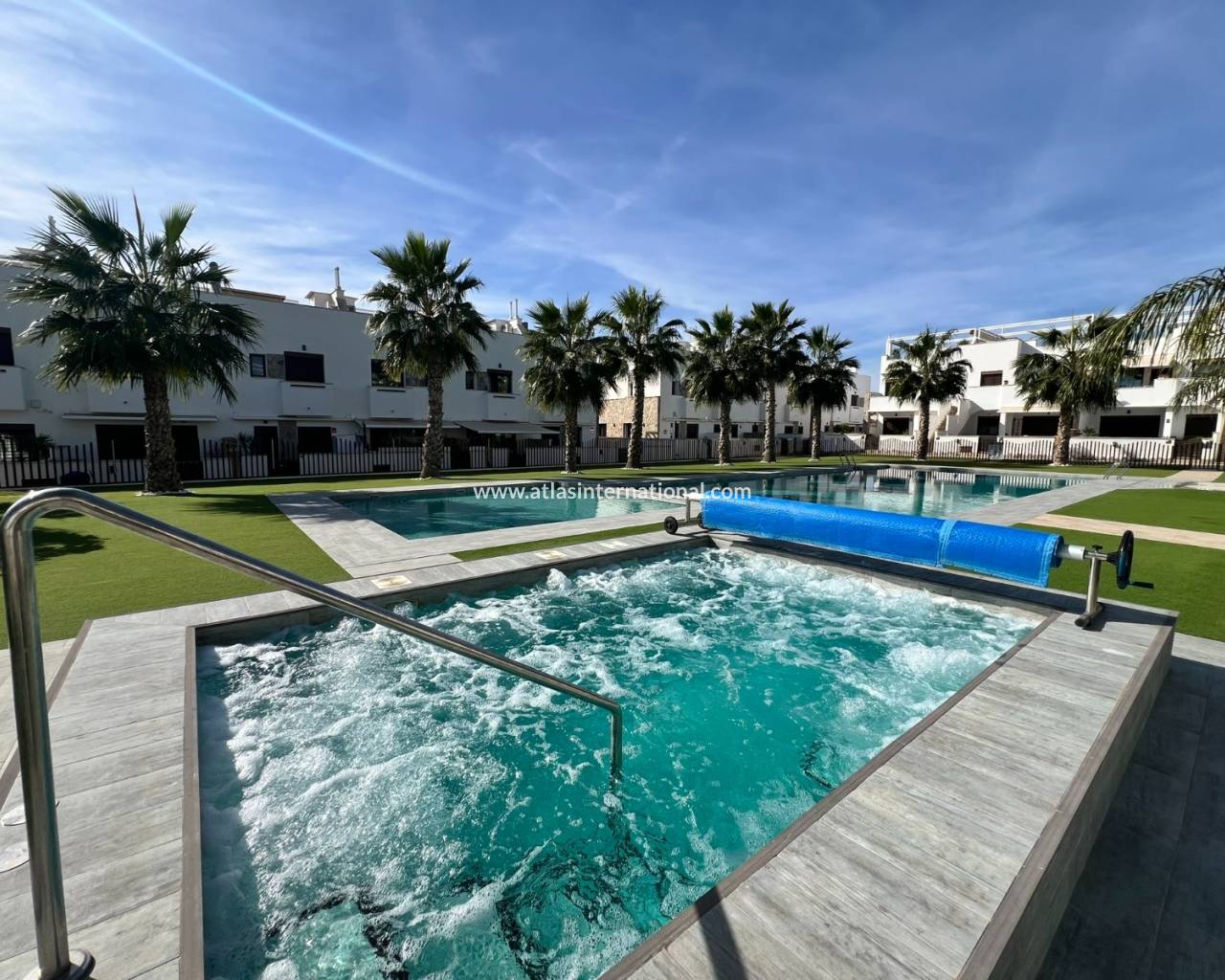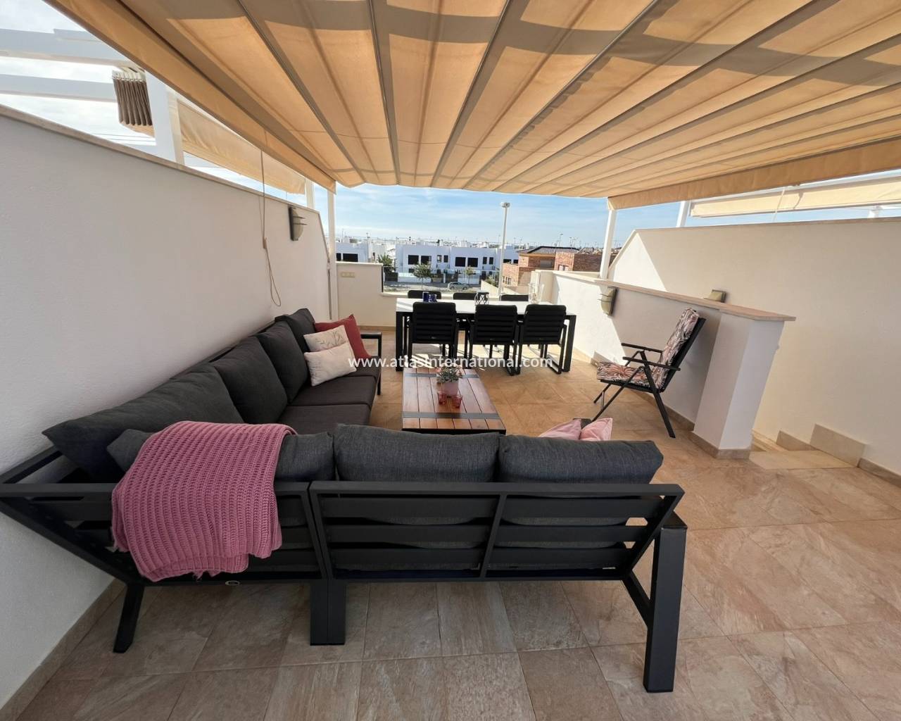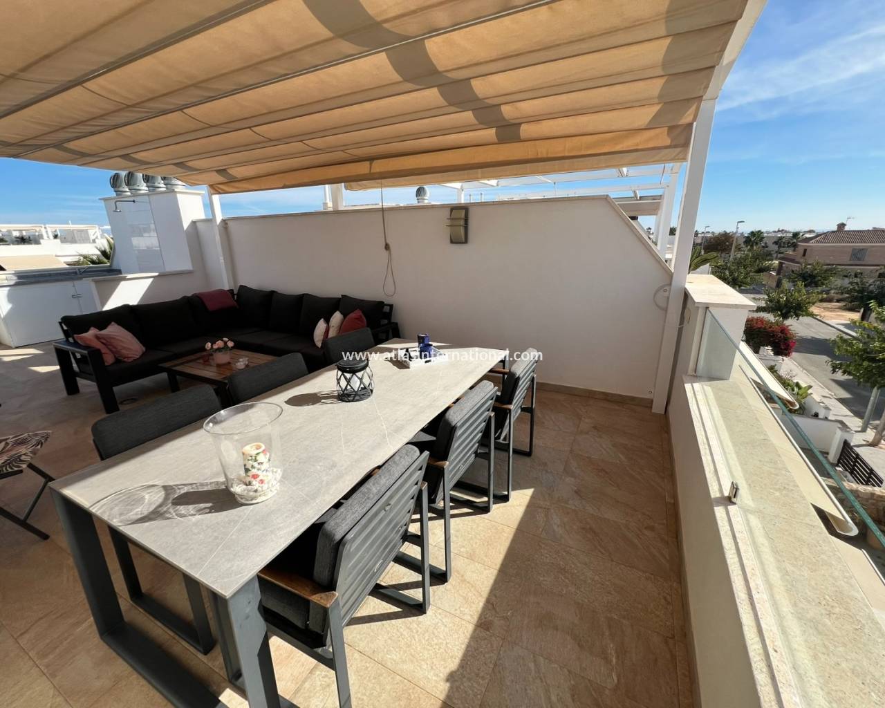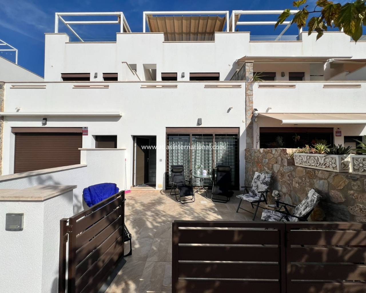Ten piękny i nienagannie utrzymany dom położony jest w jednej z najbardziej prestiżowych dzielnic mieszkalnych. Zaledwie 600 metrów od długiej, piaszczystej plaży z licznymi barami i restauracjami, oferuje wyjątkowe warunki życia. Dom posiada trzy sypialnie i trzy łazienki (w tym dwie en-suite). Jedna z sypialni posiada garderobę. Na parterze sypialnie i kuchnia wychodzą na urokliwy taras, który prowadzi do pięknej części wspólnej z basenem. Kompleks oferuje również całoroczne jacuzzi, centrum fitness i przestronną saunę. Dom, z ekspozycją południową, posiada duży taras, balkon dostępny z jednej z sypialni i po wewnętrznych schodach oraz duży taras słoneczny z przepięknym widokiem na morze, basen i góry.