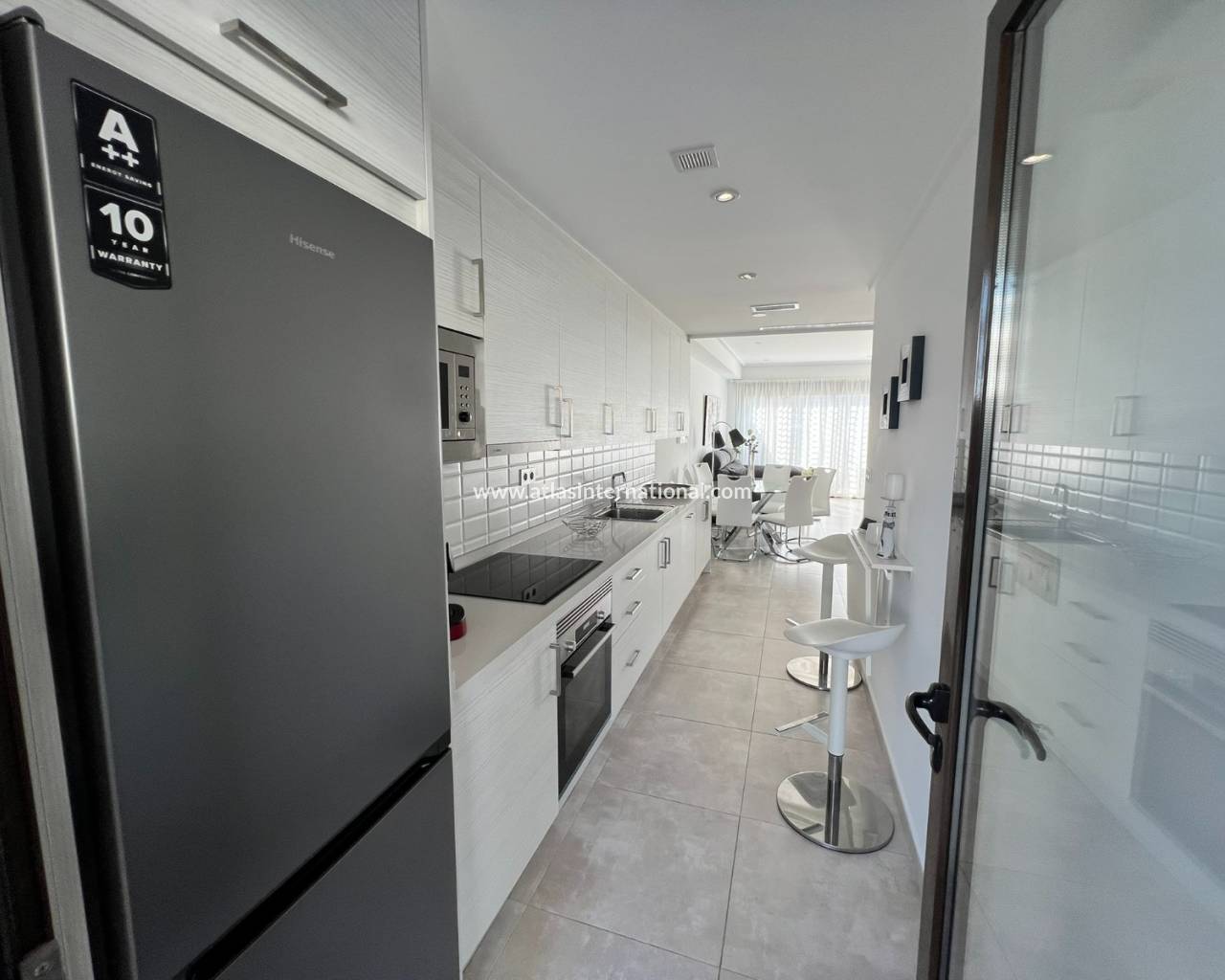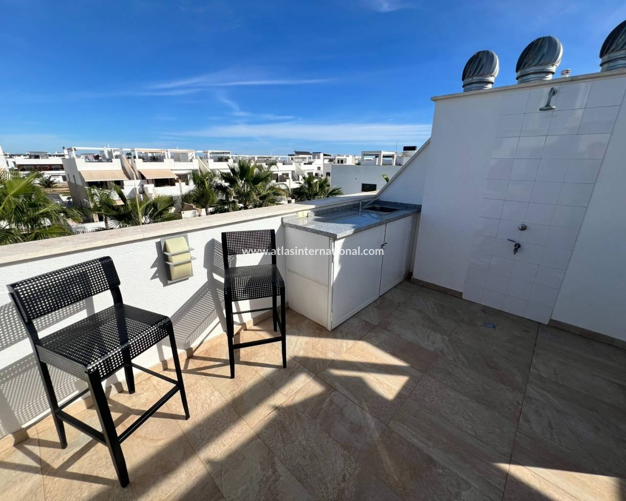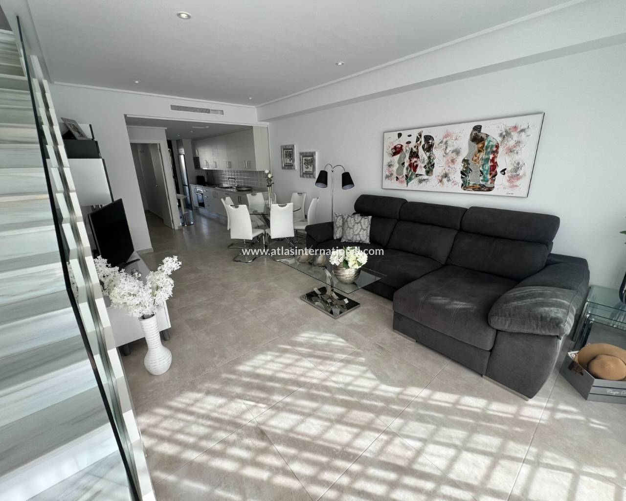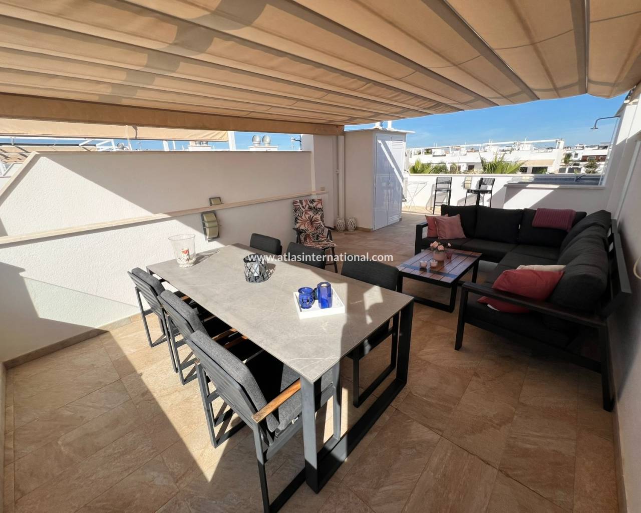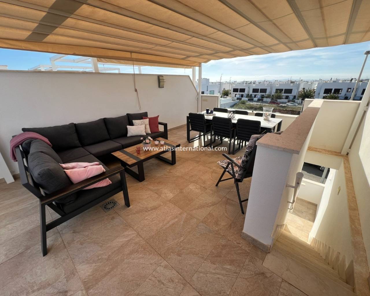 Ten piękny i nienagannie utrzymany dom położony jest w jednej z najbardziej prestiżowych dzielnic mieszkalnych. Zaledwie 600 metrów od długiej, piaszczystej plaży z licznymi barami i restauracjami, oferuje wyjątkowe warunki życia. Dom posiada trzy sypialnie i trzy łazienki (w tym dwie en-suite). Jedna z sypialni posiada garderobę. Na parterze sypialnie i kuchnia wychodzą na urokliwy taras, który prowadzi do pięknej części wspólnej z basenem. Kompleks oferuje również całoroczne jacuzzi, centrum fitness i przestronną saunę. Dom, z ekspozycją południową, posiada duży taras, balkon dostępny z jednej z sypialni i po wewnętrznych schodach oraz duży taras słoneczny z przepięknym widokiem na morze, basen i góry.