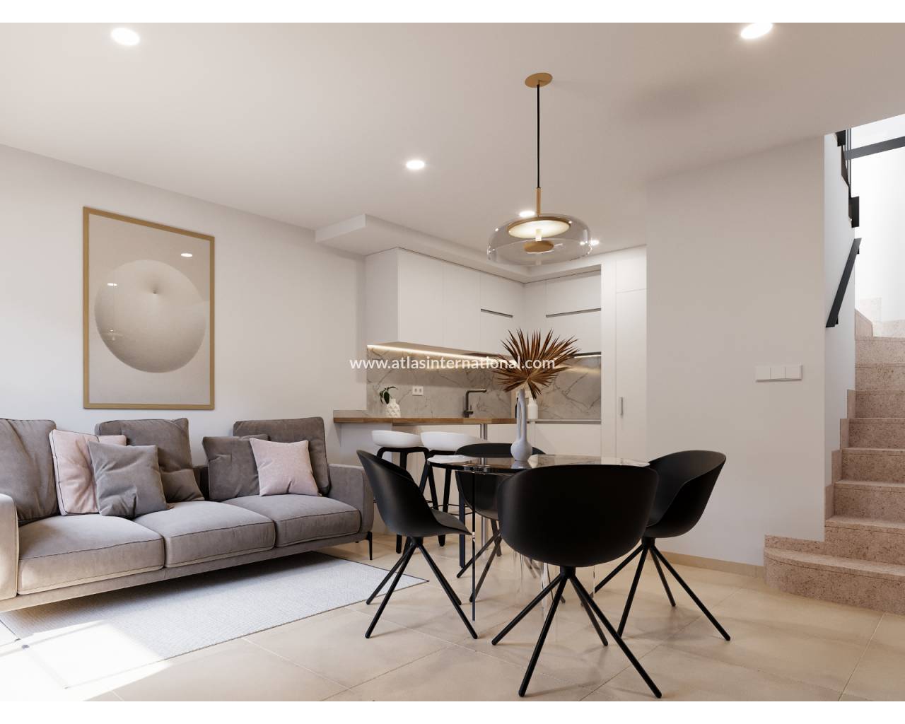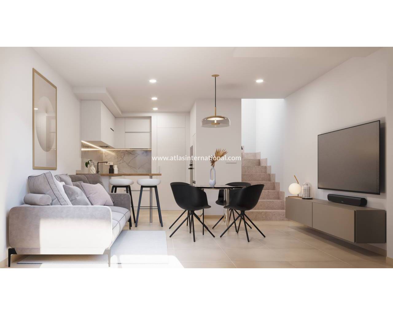 Дома спроектированы в современном стиле и имеют открытую планировку, где полностью оборудованная кухня плавно переходит в светлую гостиную с обеденной зоной.