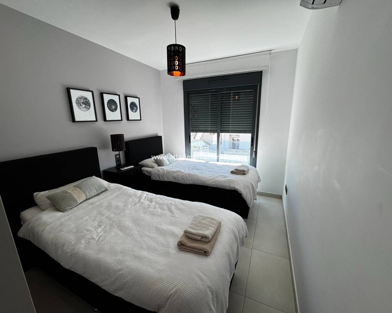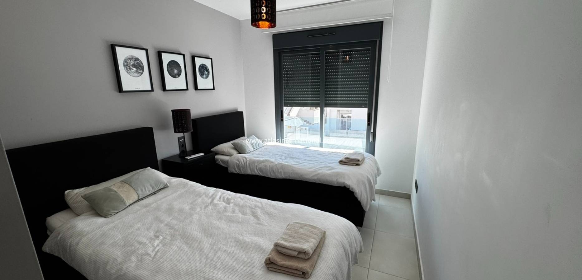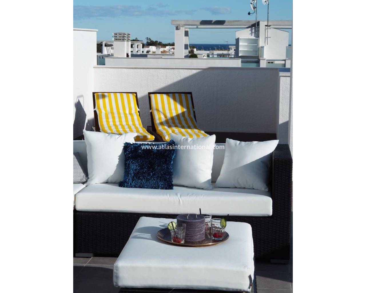 В этих апартаментах-пентхаусе есть балкон и большая солнечная терраса с видом на обширные общественные сады Oasis Beach 9. В апартаментах есть 2 спальни и 2 ванные комнаты с подогревом пола в ванных комнатах и кондиционеры во всех помещениях. На территории есть подземный гараж, общий бассейн и гидромассажная ванна. Также имеется лицензия на сдачу в аренду на время отпуска, а также в нескольких минутах ходьбы от многих баров и ресторанов Пунта-Примы.