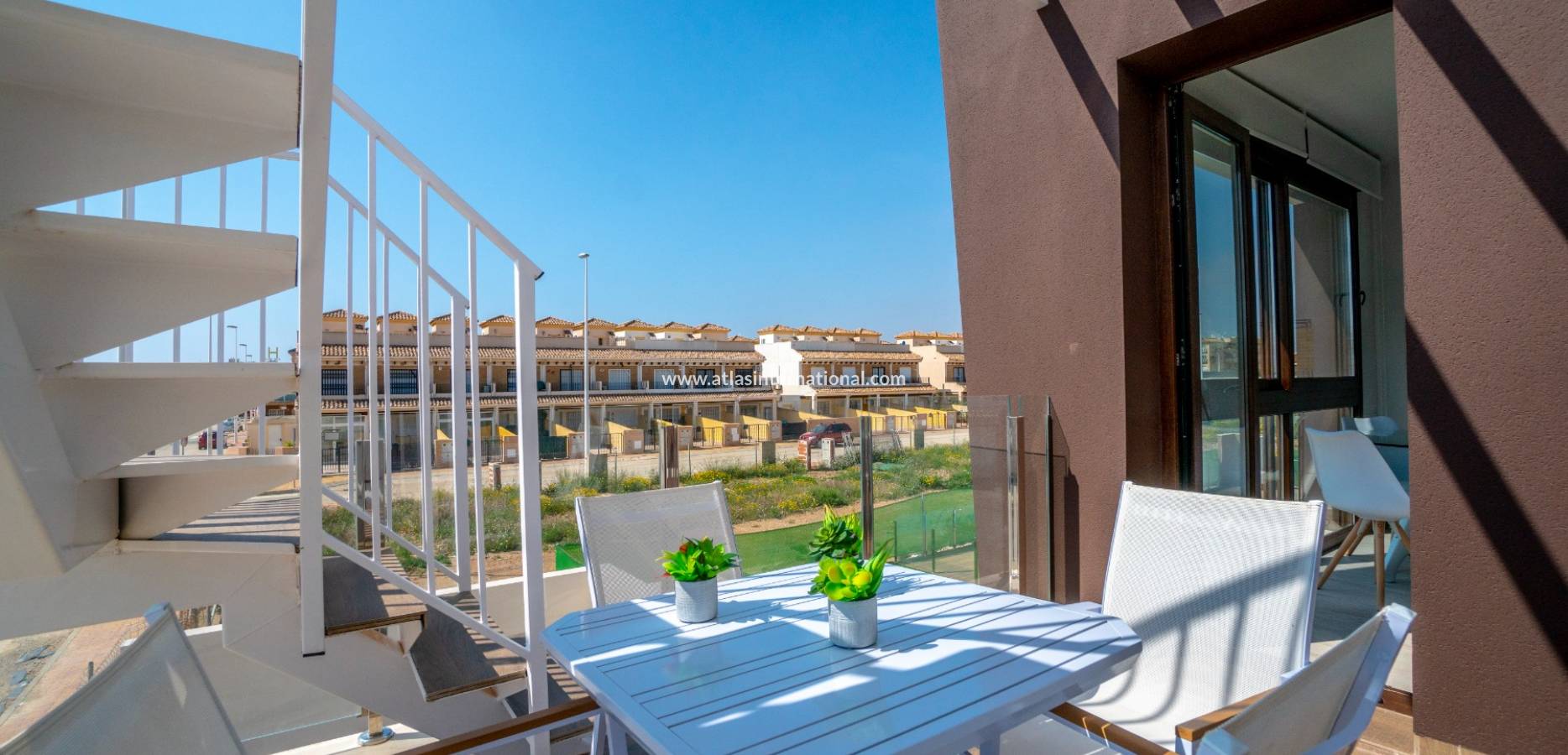 Denna takvåning i två plan har två sovrum och en rymlig, solig terrass. Fastigheten ligger på landsbygden strax utanför San Miguel de Salinas....