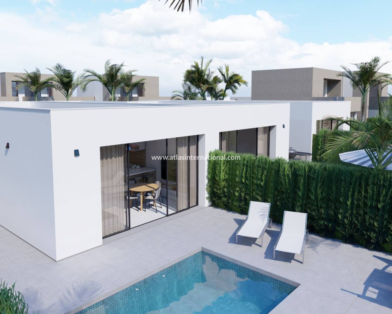 Dessa enplans parhus villor är idealiska för någon som letar efter en investering eftersom alla fastigheter är utsedda som turisthyresfastigheter. Villorna har två sovrum och två badrum, varav ett har eget badrum, och har en privat pool, luftkonditionering, vitvaror och innerbelysning. Platsen ligger bara 200 meter från stranden och har även närliggande bekvämligheter och en småbåtshamn.